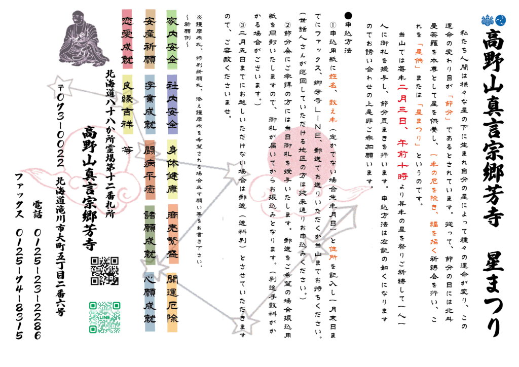 郷芳寺節分会(星まつり)を令和八年二月三日に行います。