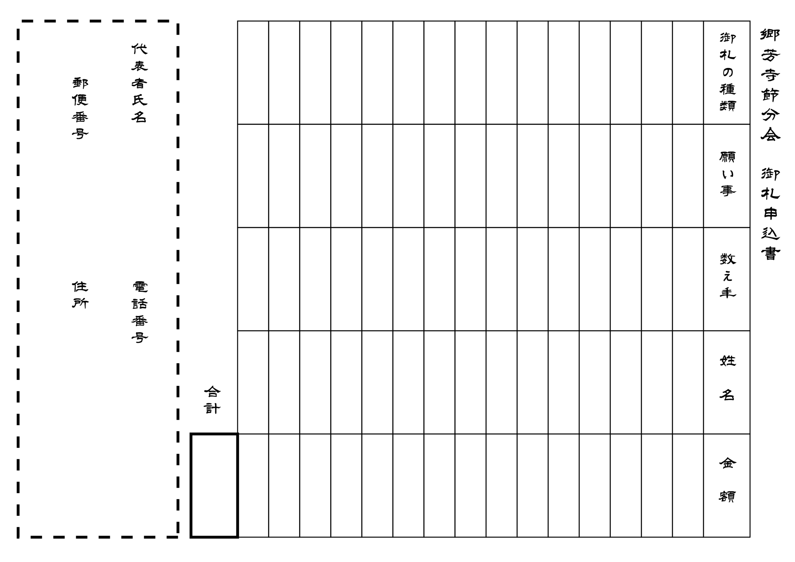 疫病退散・諸願成就・商売繁盛・学業成就・開運厄除・無病息災・良縁結願・家内安全・身体健康などご希望の願いを祈願します。